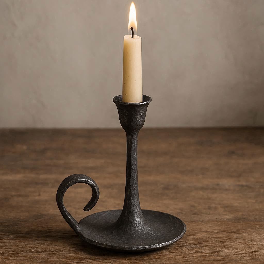 Forged Iron Single Taper Holder – Minimalist Line Art