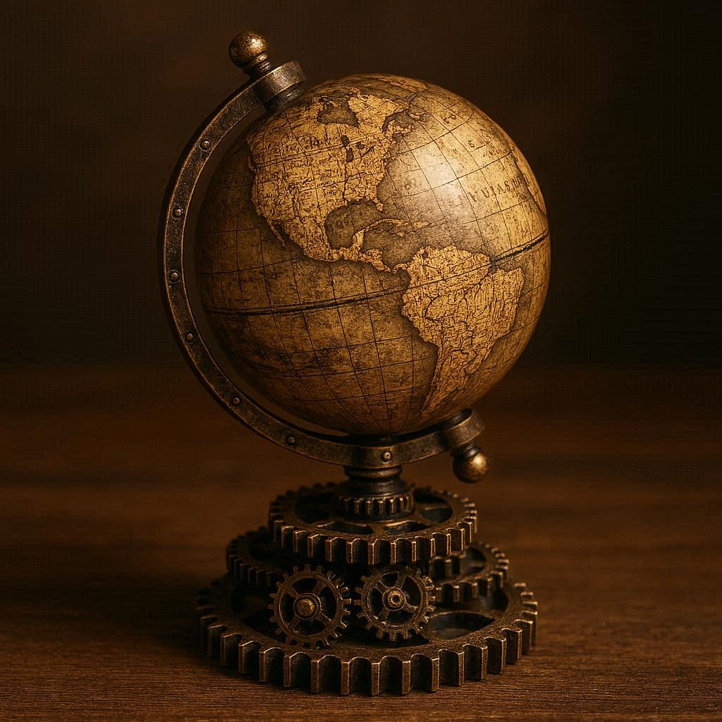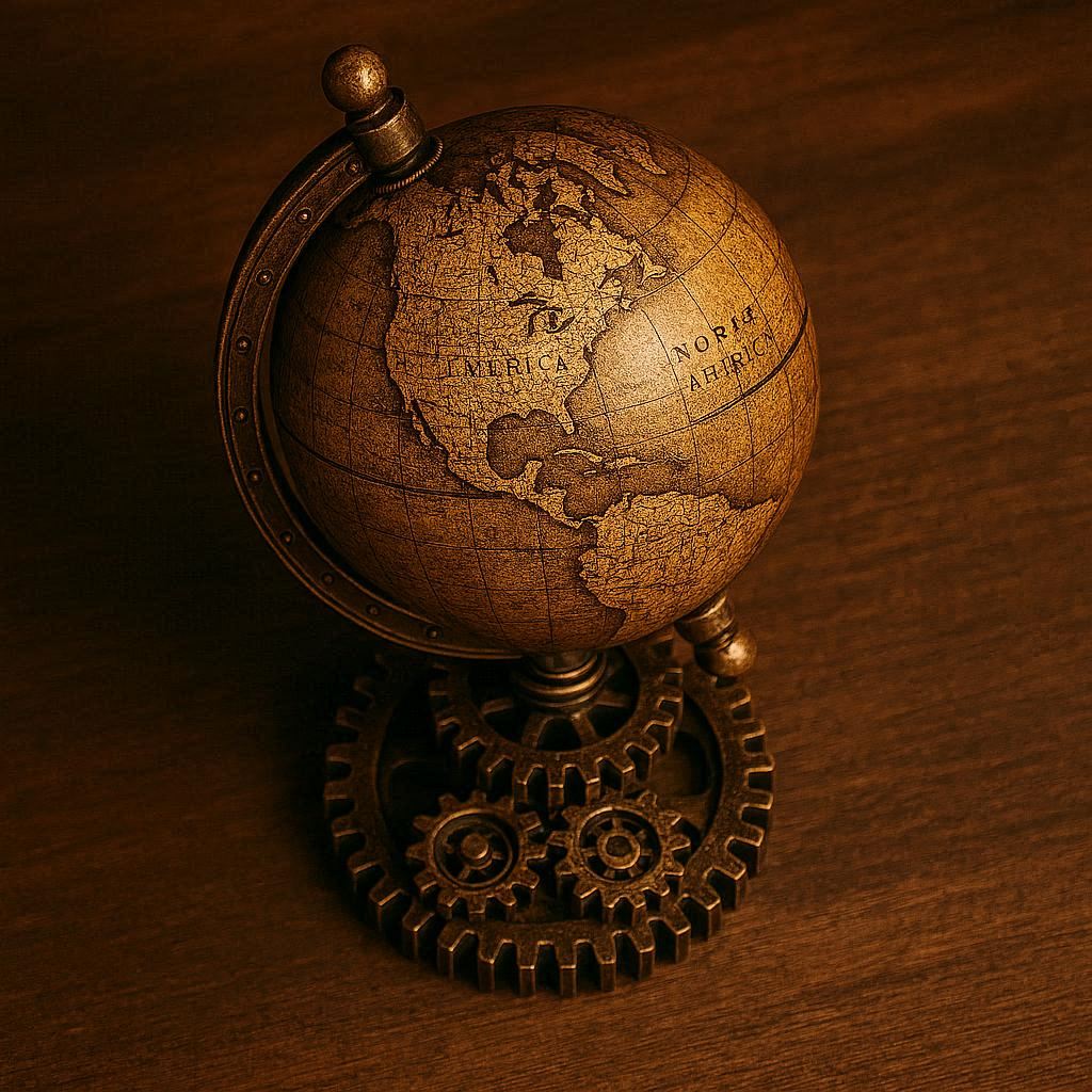 Steampunk Style Miniature Gears & Globe Paperweight – Vintage Explorer’s Relic