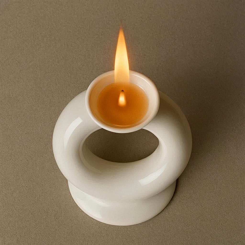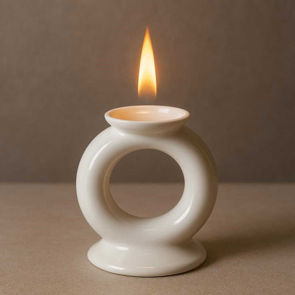 White Porcelain Ring Candle Holder – Floating Flame Effect